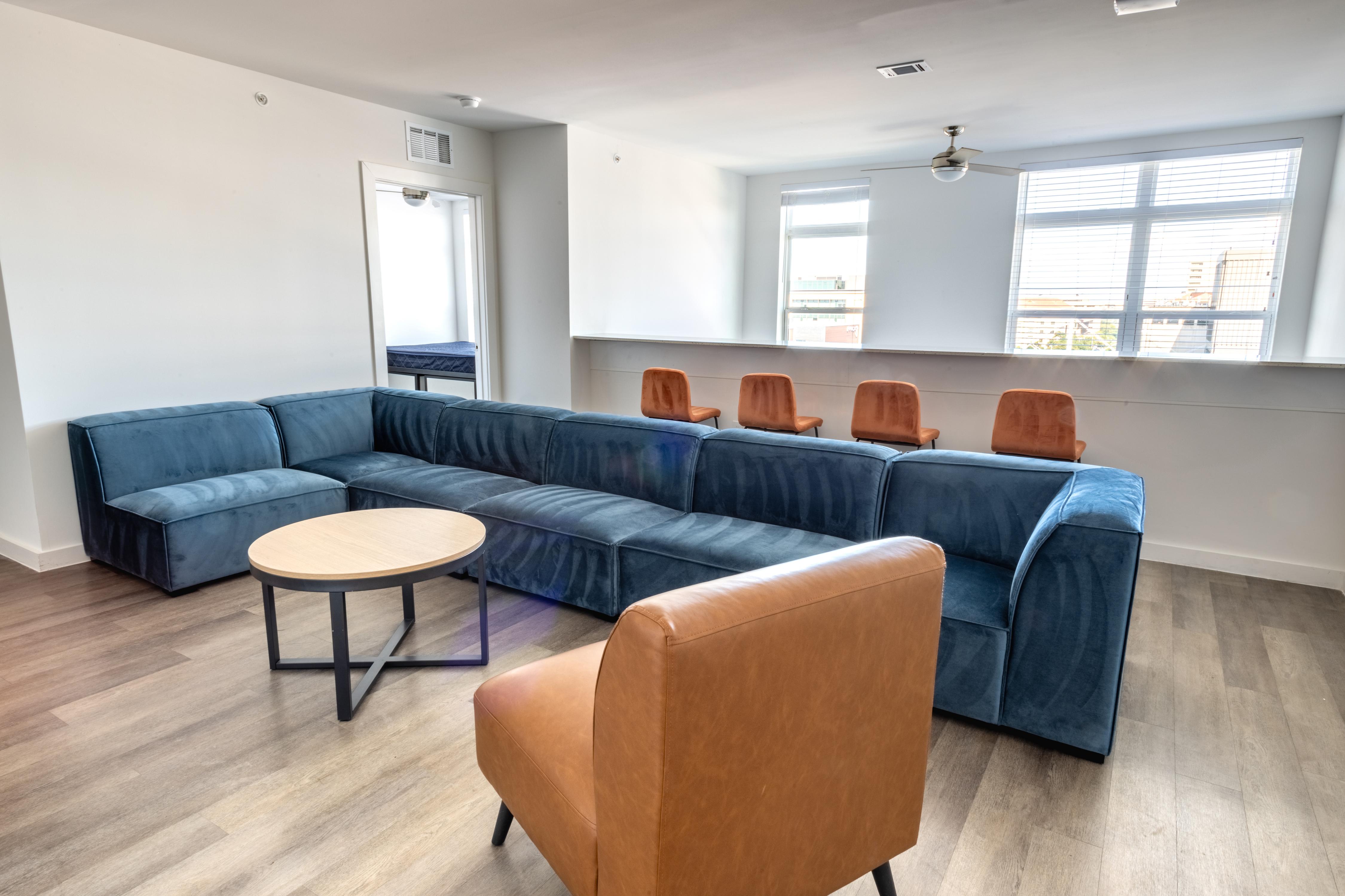Representative Penthouse living room featuring Rambler’s standard furniture and finishes. Pictured here is The Cosmico.