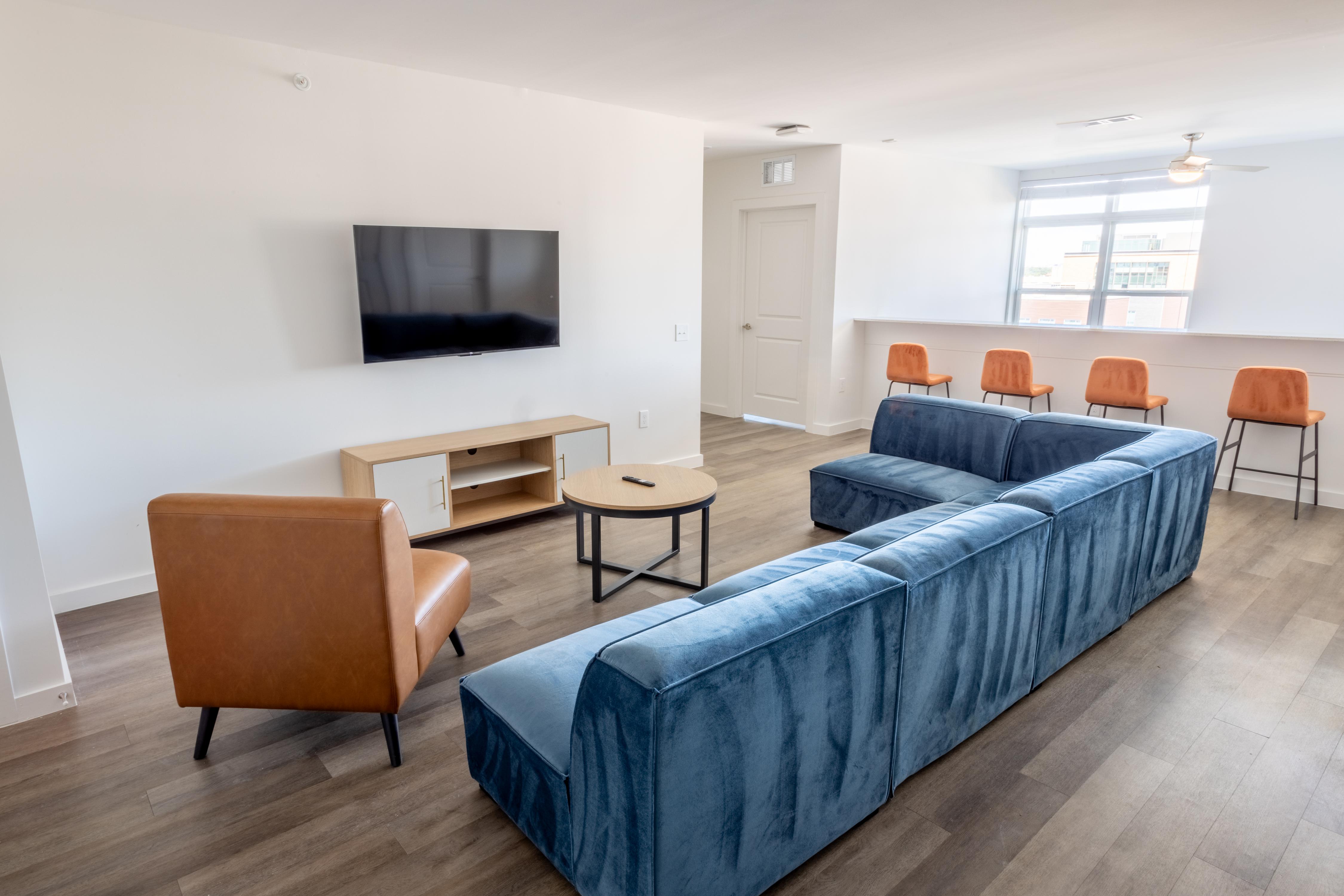 Representative Penthouse living room featuring Rambler’s standard furniture and finishes. Pictured here is The Cosmico.